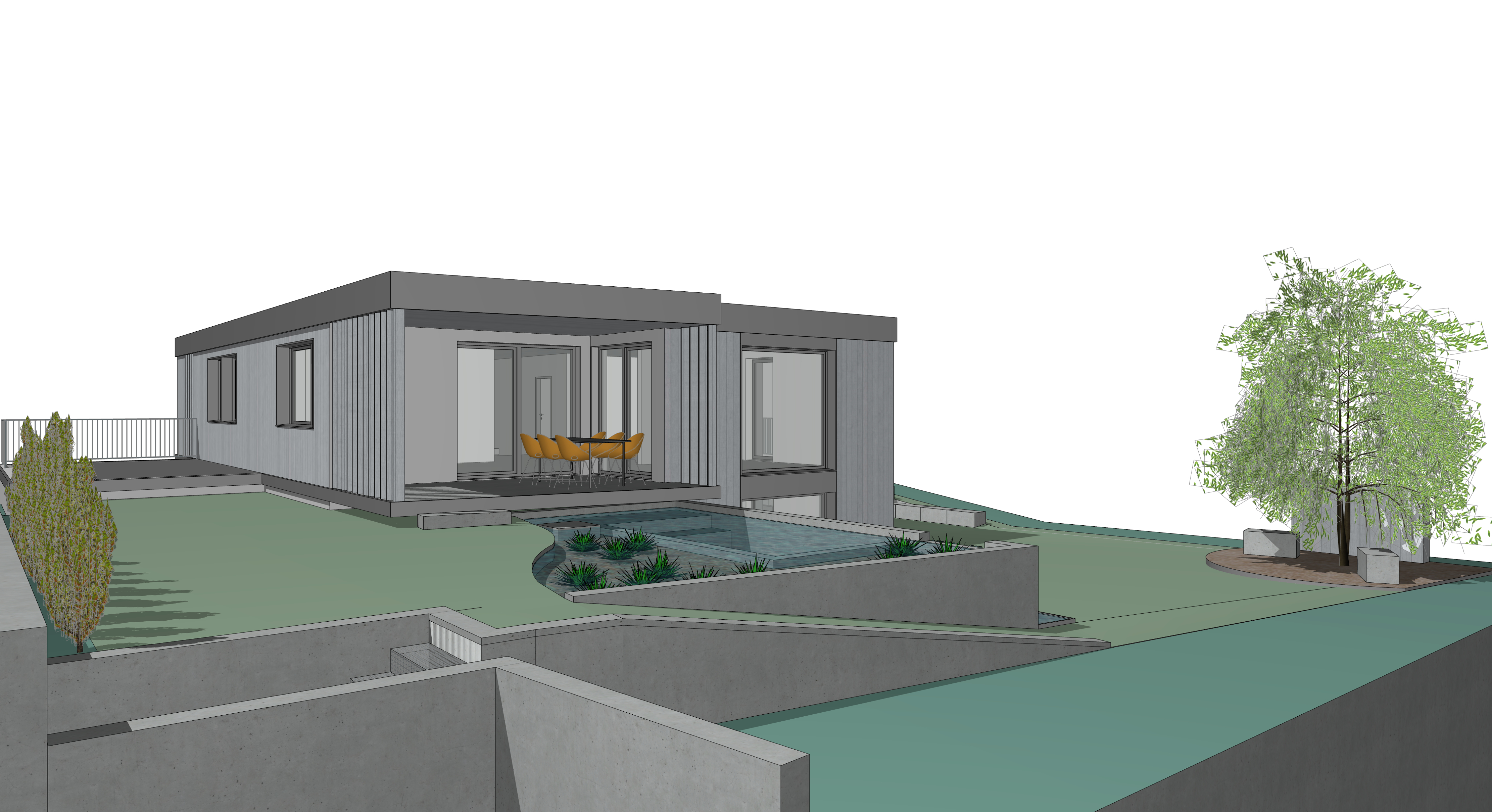 Das in die Jahre gekommene Haus in einer Wohnsiedlung entspricht nicht den Anforderungen der neuen Besitzer. Auf das leicht adaptierte Kellergeschoss wurde ihr Traum von Wohnen in einer zeitgemässen Bauweise aus Holzelementen verwirklicht.